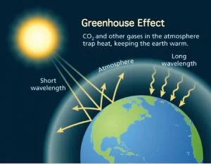 In recent years, however, it has become apparent that fossil fuels are not a sustainable primary source of energy in the long-term. These fuels are considered “non-renewable” as they must spend millions of years being formed in the Earth’s crust before being available in the forms described above. Moreover, the combustion of fossil fuels results in the emission of gaseous by-products known as greenhouse gases. These greenhouse gases modify the composition of the Earth’s atmosphere giving rise to a “greenhouse” effect, from which they derive their name. Radiation from the sun warms and is reflected off the Earth’s surface, and heat is then trapped by this insulating layer of gas, subsequently resulting in rising temperatures (See Figure). This phenomenon is known as global warming.